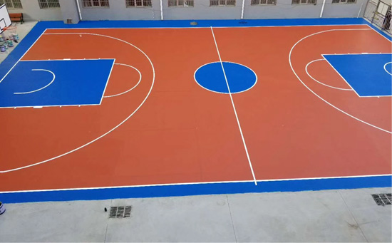 籃球場施工的基面要保持干凈、干燥,沒有其它工程施工交叉作業(yè),室內(nèi)空氣的相對濕度要小于85%,當(dāng)濕度過大時要停止施工。