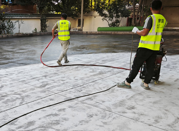 1、對舊水泥地面使用大型打磨機器進行徹底打磨處理,打磨作用一是能清除水泥地面長久存在的浮灰,使奧茵硅pu底涂層涂刷的是水泥地表面而不是水泥表面的浮灰,更不容易脫層,這也是為什么市場上許多硅pu球場脫層的重要原因之一;二是對水泥地面凹凸不平之處打磨平滑,這樣更利于后期球場材料整體流平性,硅pu球場表面更順平,一片高質量的奧茵硅pu球場,基礎的質量起關鍵作用。