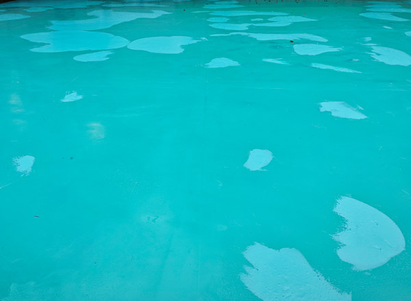6、修補積水:第一層奧茵硅pu彈性層干固后,用積水法測試表面積水,積水處用彈性層材料填補,修補時要注意修邊,不要高出積水周邊基面,若高出則用打磨機打磨平整。干固后檢查是否有凸出位置、顆粒狀雜物在表面,有則用150角磨機打磨平整,清理干凈再做下一道工序。