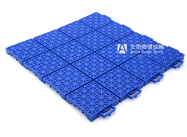 3.懸浮式拼裝運動地板其主要原材料為改性聚丙烯,具有一定的彈性和韌性,地板之間連為鎖扣式連接,通常采用的施工工具是皮錘。但是需要施工人員注意的是,拼接安裝時注意子扣、母扣之間是否對齊,以免造成對地板的人為損壞。鋪裝完成之后可根據(jù)場地實際需要畫出所需要的場地線。